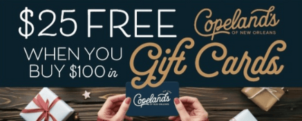 Looking for a perfect gift for friends, family, or coworkers? Copeland’s holiday gift cards are a great choice, and right now, there’s a special deal: purchase $100 in gift cards and get $25 free! 💳 It’s a tasty way to share some love and give the gift of great food.