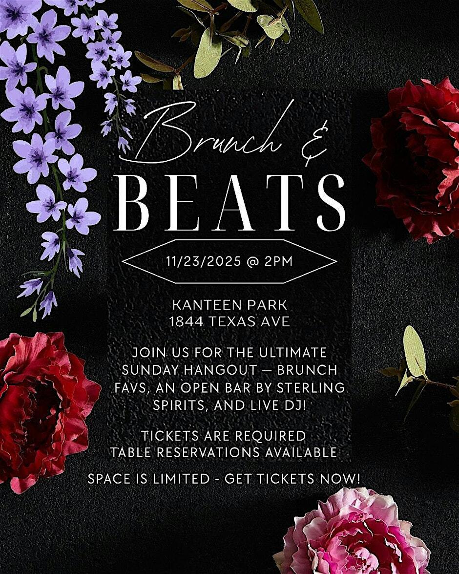 Brunch & Beats offers a lively Sunday experience in Shreveport, featuring popular brunch dishes, an open bar by Sterling Spirits 🥂 (including non-alcoholic drinks), and a live DJ playing upbeat tunes.